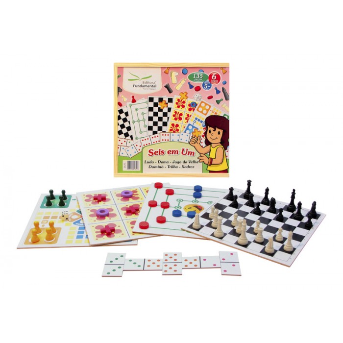 Contém um tabuleiro em MDF emoldurado tamanho 28 x 28 x 0,9 cm impresso frente e verso + 34 peças em madeira